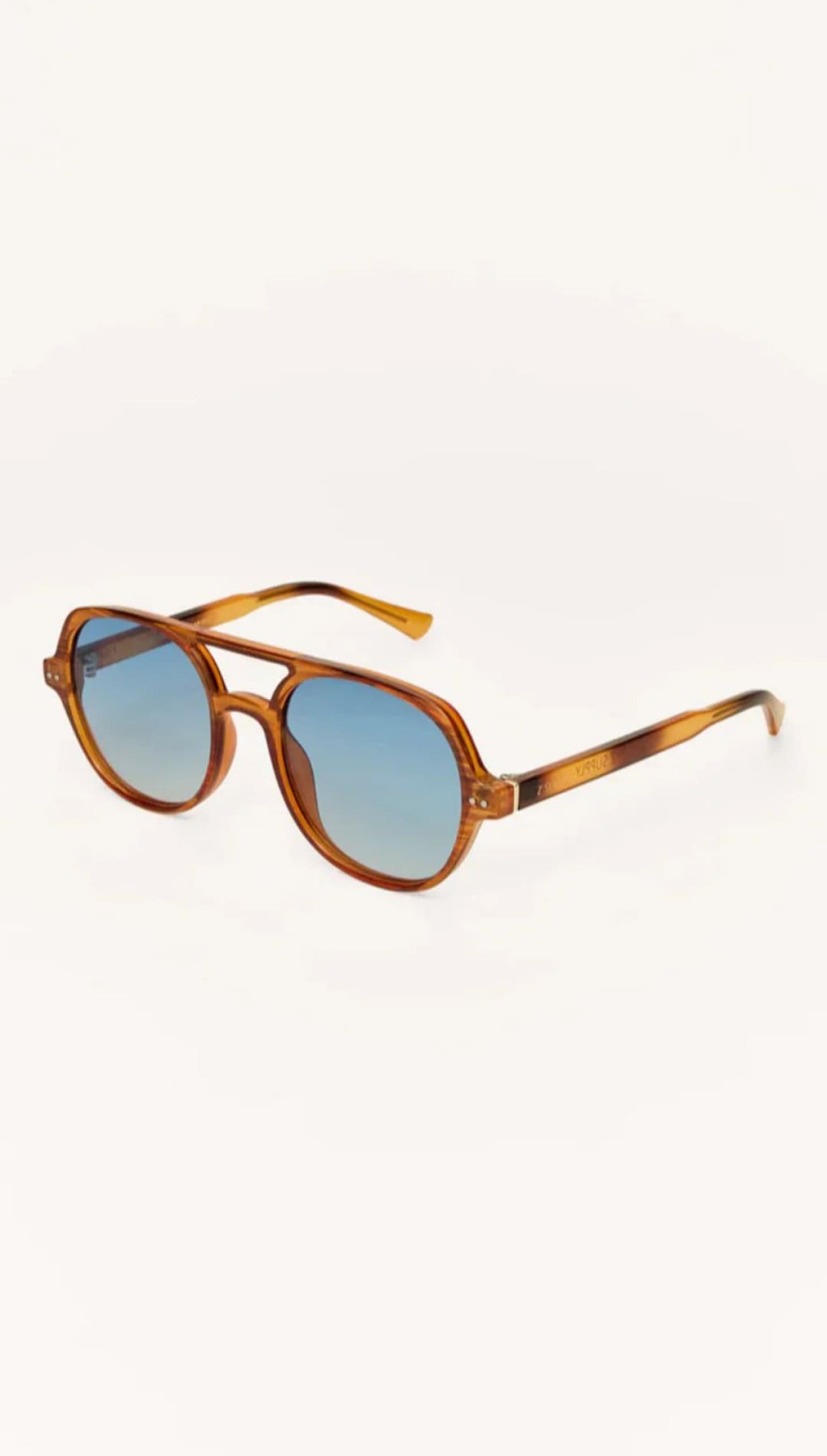 Introducing the Z Supply Summerland Sunnies, perfect for sunny days ahead. These versatile tortoise brown sunnies feature blue tinted lenses, providing both style and protection. Make a statement with these must-have shades.