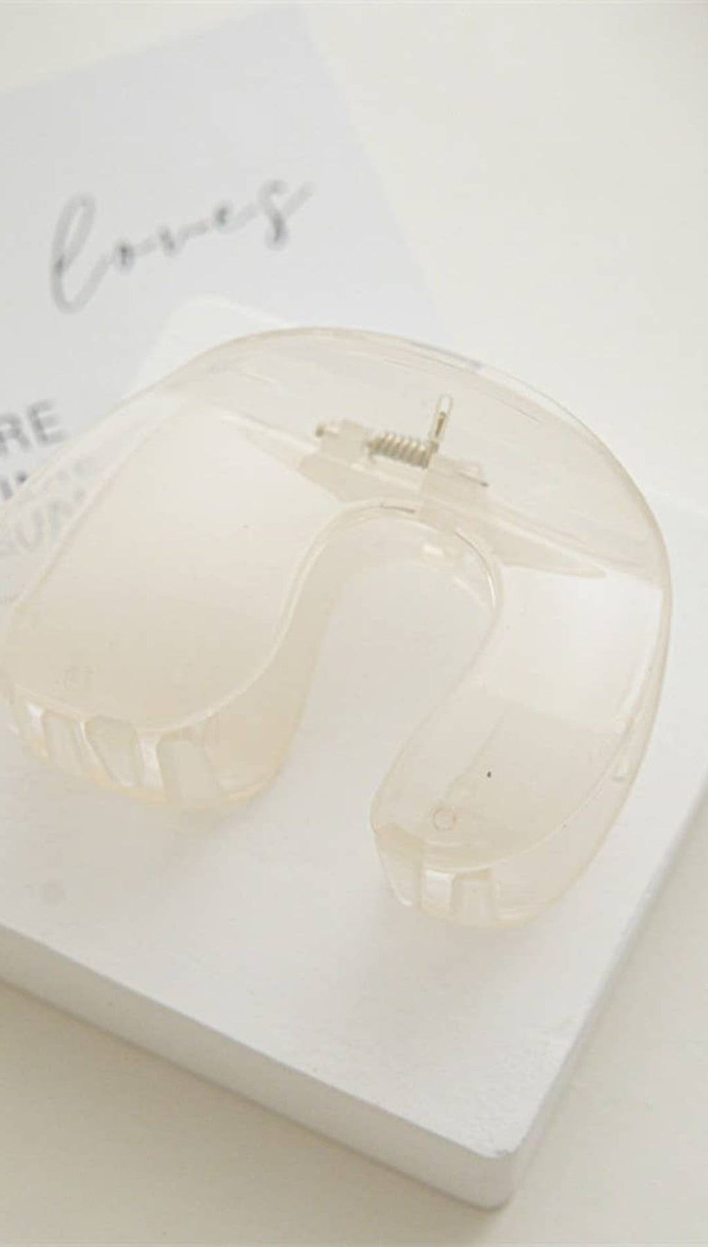 Amber plastic claw hair clip with curved prongs and translucent finish.