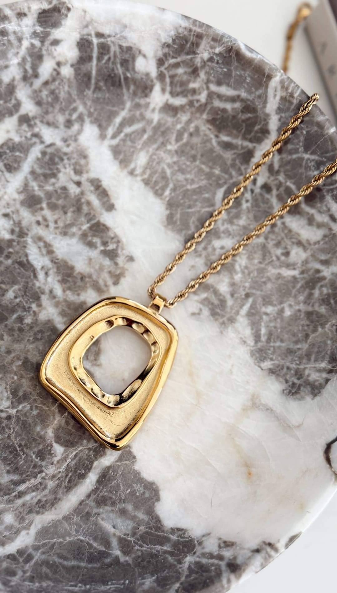 The Taylor Necklace is your go-to statement piece—featuring a bold, chunky gold pendant that instantly elevates any outfit. Designed to keep up with everyday wear, it’s water-resistant and finished with an adjustable chain so you can style it at the perfect length.