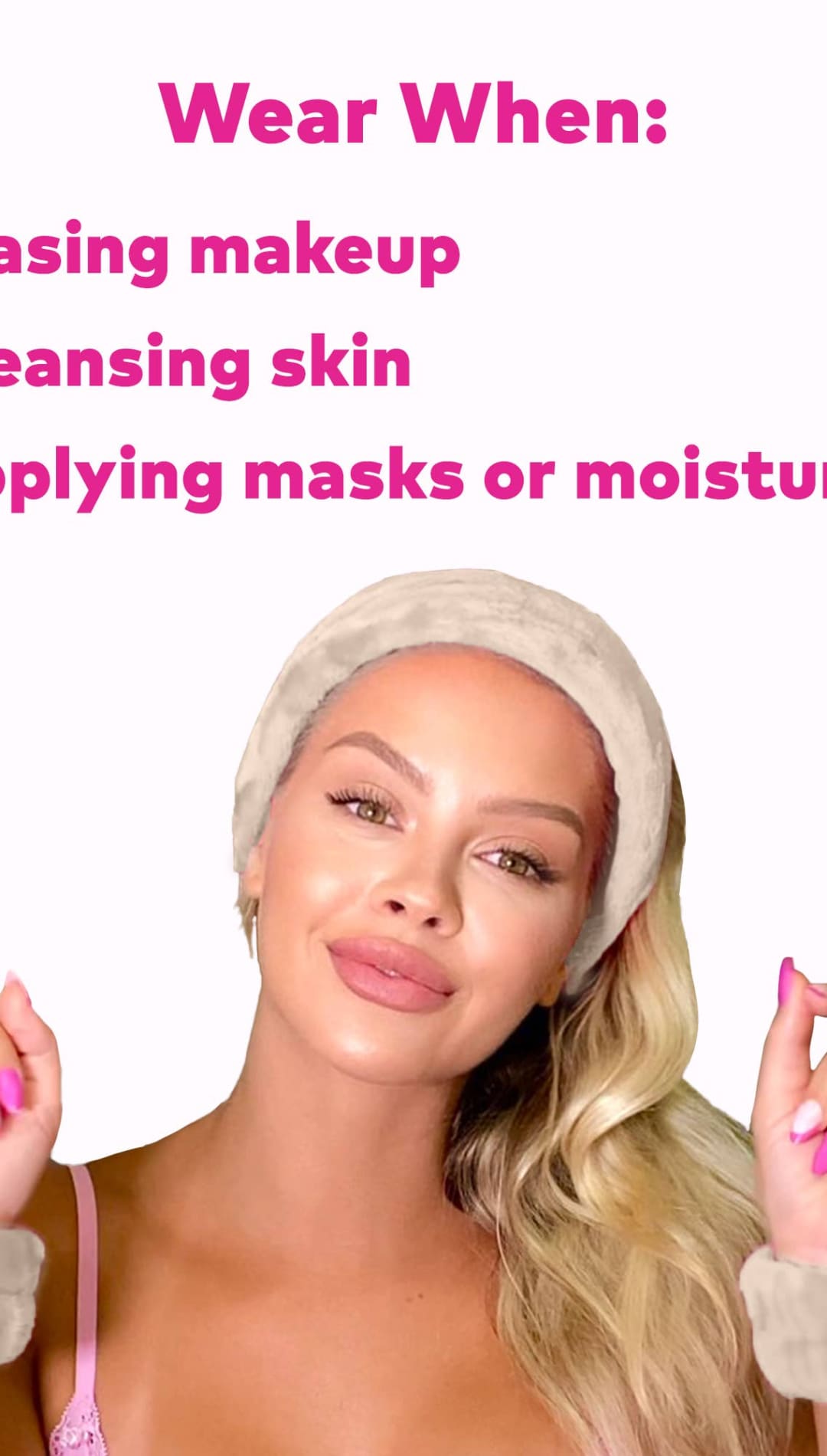 Wristbands are ultra-absorbent & designed to stop the flow of water down your arms as you do your AM/PM skincare routine. No more wet counters, no more wet sleeves! Fluffy headband keeps hair pulled back & out of your face