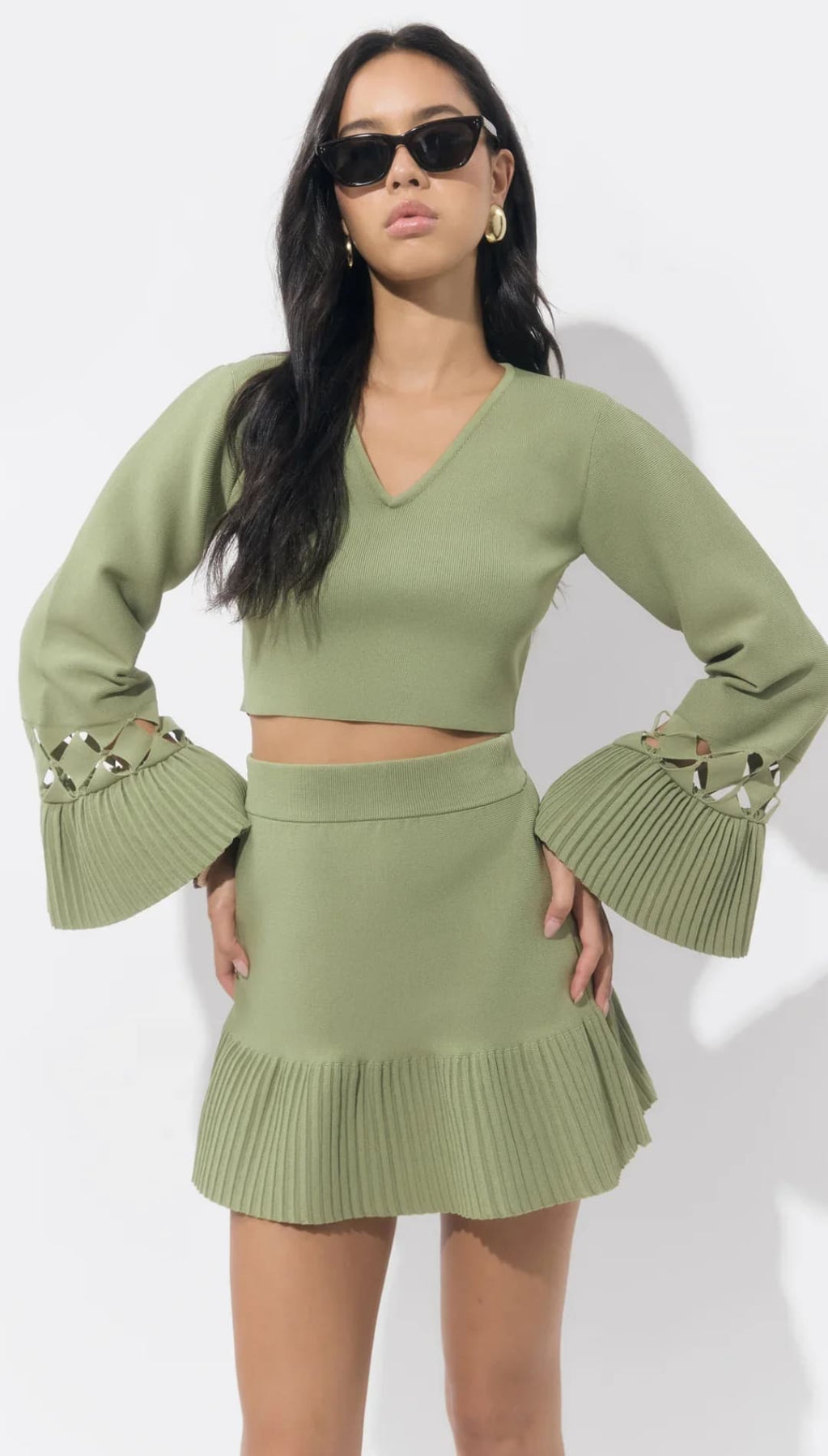 Introducing the Heidi Bell Sleeve Knit Top from Adelyn Rae- for those looking to stand out with effortless style. Crafted in a comfortable knit material, this top features voluminous bell sleeves and edgy cut-out detailing near the shoulders or neckline. Perfect for adding a touch of visual interest to your outfits.